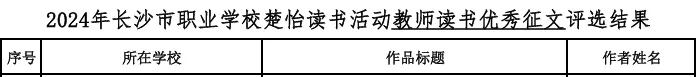 2024年长沙市职业学校楚怡读书活动我校常浪老师的作品《“阅”铸匠心——缓慢而坚定的成长》被评为教师读书优秀征文