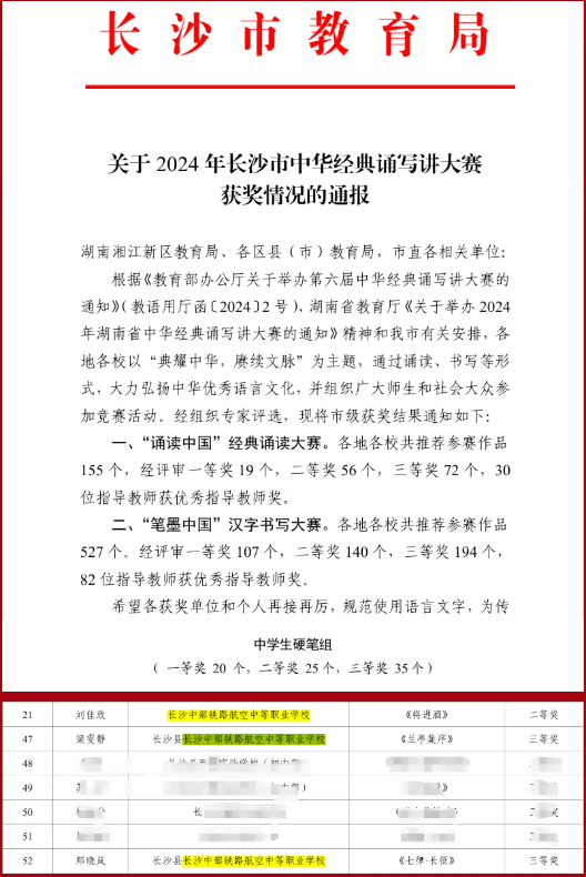 在2024年长沙市中华经典诵写讲大赛中,我校学生凭借出色的表现,荣获了多项殊荣,为学校赢得了荣誉。特此,我们怀着无比喜悦的心情,向全校师生及家长报喜,并向所有关心和支持我校发展的社会各界朋友表示衷心的感谢!