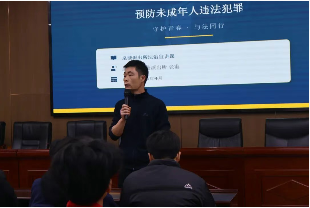 4月1日,我校特邀学校法治副校长、泉塘派出所张甫警官走进校园,为我校学子带来一场主题鲜明、内容深刻的法治教育专题讲座。这场讲座,不仅是一次法律知识的普及,更是一场关于成长边界、人生底线的心灵叩问。