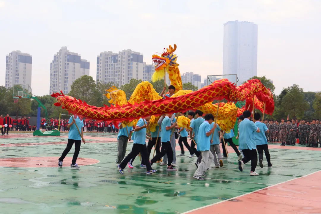 紧接着,一场精彩纷呈的开幕式表演呈现在大家眼前。首先登场的是龙狮表演队,他们身着鲜艳的服装,手持长龙和雄狮,在操场上翻腾跳跃,气势恢宏。龙身蜿蜒起伏,狮头威严抖动,仿佛将传统文化与现代体育精神完美融合。