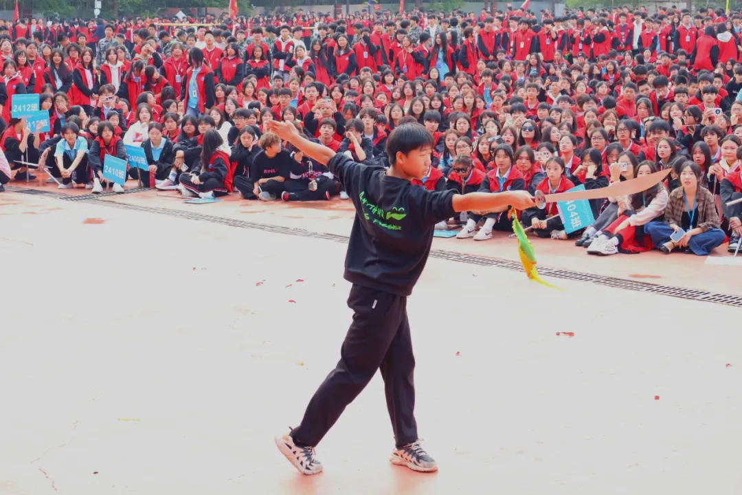 国防武术队的同学们以矫健的身姿和精湛的武艺,为大家带来了一场视觉盛宴。他们的动作刚劲有力,气势如虹,赢得了现场观众的阵阵掌声。