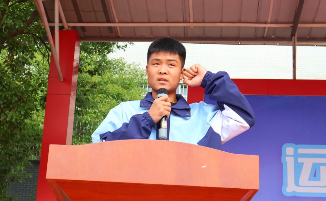 运动员代表2322班的颜杰同学上台宣誓。他精神抖擞,用坚定的语气表达了自己对比赛的决心和信心。他承诺将严格遵守比赛规则,尊重对手,尊重裁判,以最好的状态迎接每一场比赛。他的宣誓代表了全体运动员的心声,也展现了他们追求卓越、勇往直前的精神风貌。