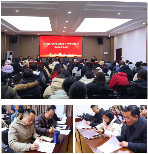 会议进入庄重严肃的环节。在全体教职工的见证下,学校行政管理团队依次上台,郑重签订“2026年度目标管理责任书”。一纸军令状,不仅是责任的划分,更是承诺与担当。它象征着全体行政人员将以“舍我其谁”的奋斗精神,锚定目标,攻坚克难,确保年度各项任务指标圆满完成。