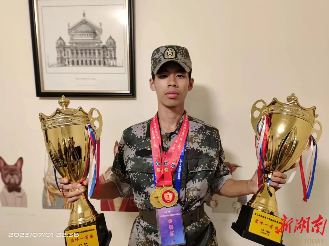 然而,冠军的头衔并没有让他满足。2025年7月刚从长沙铁路航空中等职业学校毕业,谭森文便第一时间报名应征入伍。在报名表上,他没有过多提及自己的荣誉,只是坚定地说:“赛场夺金是为校争光,参军入伍是为国站岗。”