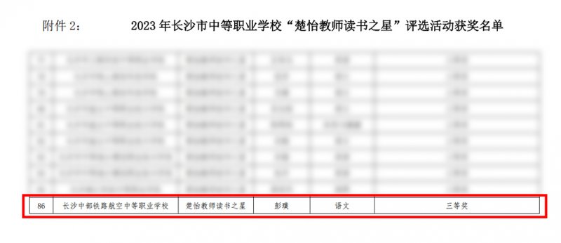 喜报丨我校陈兴新老师带领2227班获得2023年长沙市中等职业学校“楚怡书香班级